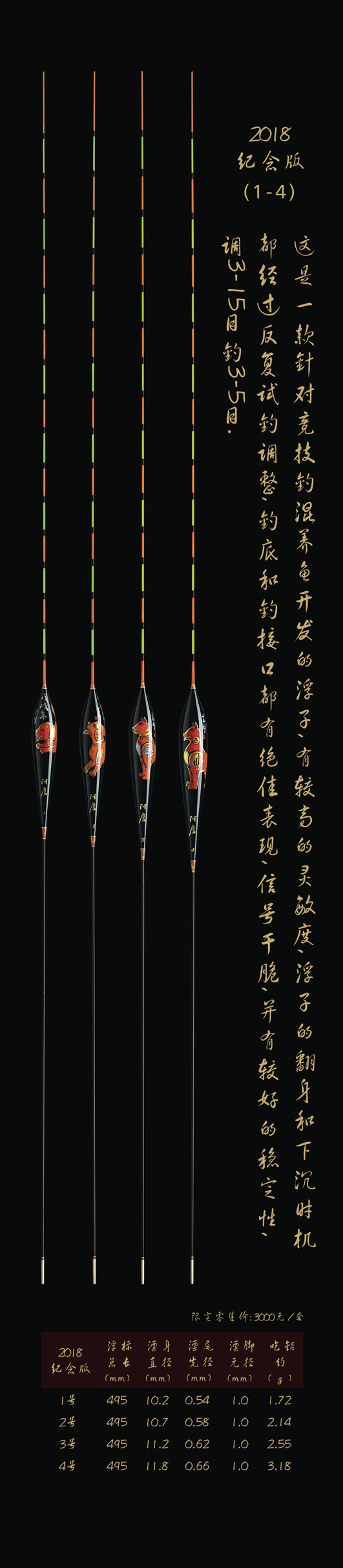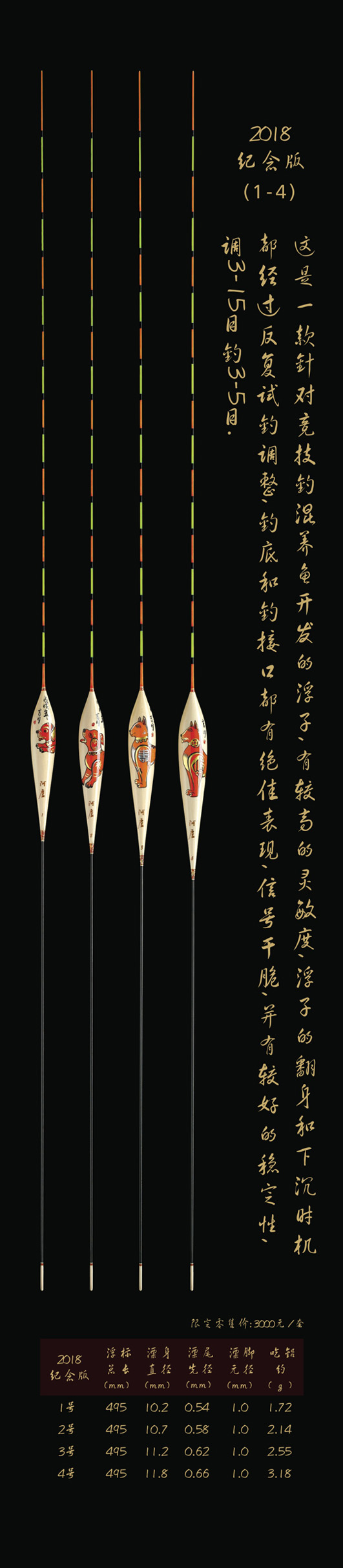 深圳市一良致釣有限公司,2018戊戌(狗)年精心設(shè)計(jì)推出象征著運(yùn)旺時(shí)盛,福旺康泰的限量紀(jì)念版浮漂。